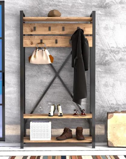 Meuble d'entrée Alfa noir/bois - 180x34x90 cm
