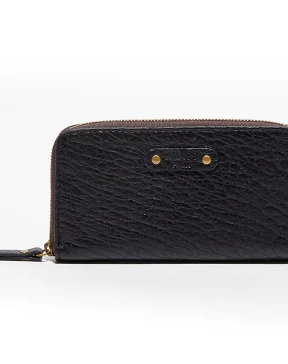 Portefeuille en Cuir d'Agneau Barbara noir - 20x2.5x10.7 cm