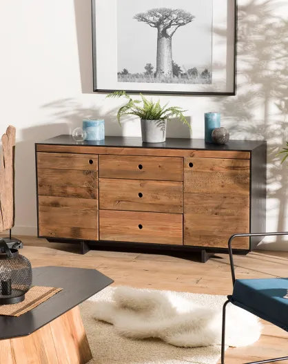 Buffet 2 portes 3 tiroirs Andrea Bois naturel - 150x48x76cm