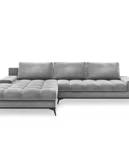 Canapé d'angle Gauche Velours convertible avec Coffre de Rangement Deneb gris clair - 315x212x87 cm