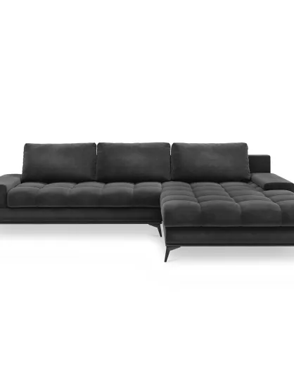 Canapé d'angle droit Velours convertible avec Coffre de Rangement Deneb gris foncé - 315x212x87 cm