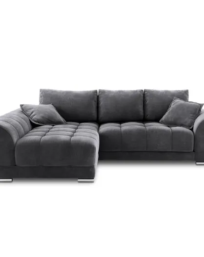Canapé d'angle Gauche Velours convertible avec Coffre de Rangement Nuage gris foncé - 285x192x92 cm