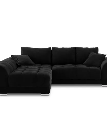 Canapé d'angle Gauche Velours convertible avec Coffre de Rangement Nuage noir - 285x192x92 cm