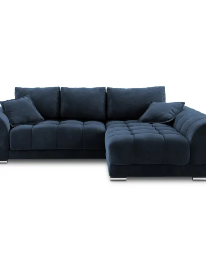 Canapé d'angle droit Velours convertible avec Coffre de Rangement Nuage bleu roi - 285x192x92 cm