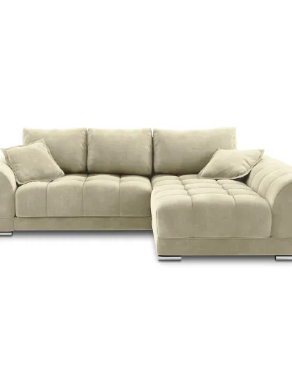 Canapé d'angle droit Velours convertible avec Coffre de Rangement Nuage beige - 285x192x92 cm