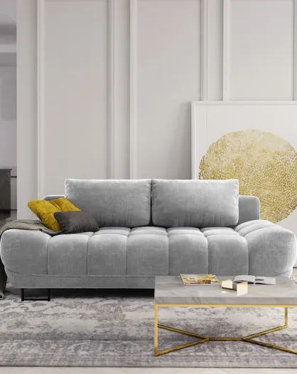 Canapé Velours convertible avec Coffre Cirrus gris clair - 215x112x90 cm