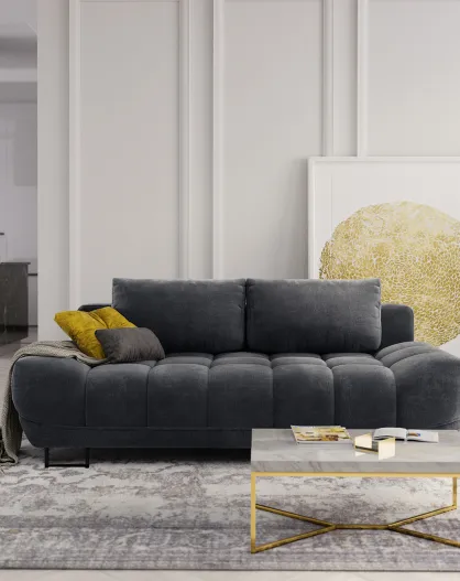 Canapé Velours convertible avec Coffre Cirrus gris foncé - 215x112x90 cm