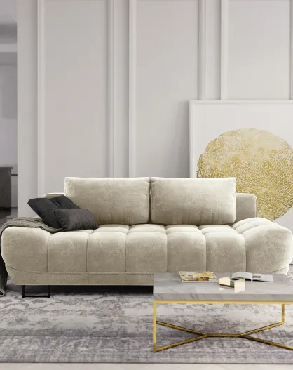 Canapé Velours convertible avec Coffre Cirrus beige - 215x112x90 cm