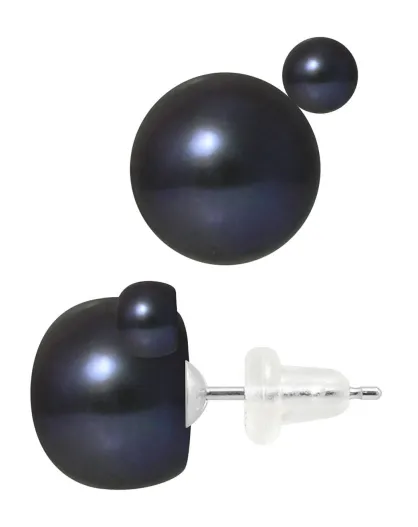 Boucles d'oreilles Duo Argent Perles d'Eau Douce boutons noires