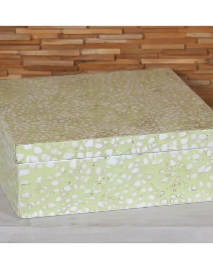 Boite avec Couvercle Tulum bambou/blanc/vert - 23x23x8 cm