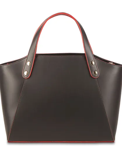 Sac à main en Cuir Lisse Parl noir/rouge - 37x24x13 cm