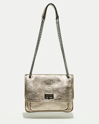 Sac Bandoulière en Cuir Lyn doré foncé métallique - 21x7.5x14.5 cm
