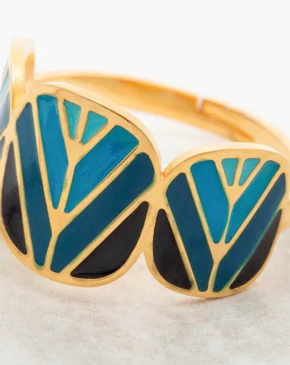 Bague ajustable Dalis en Acier doré/bleu