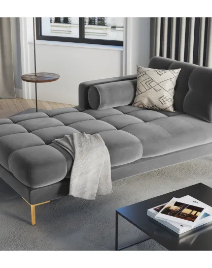 Méridienne Gauche Velours Bali grise - 185x102x78cm