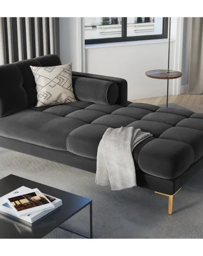 Méridienne Droite Velours Bali gris foncé - 185x102x78cm