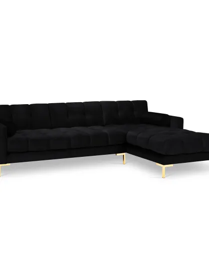 Canapé d'angle Droit Velours Bali noir - 293x185x78cm