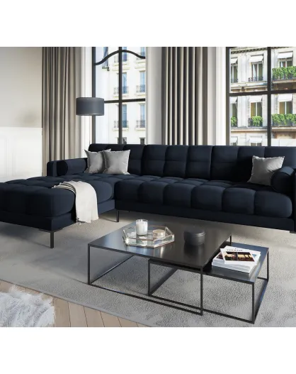 Canapé d'angle Gauche Velours Bali bleu foncé - 293x185x78cm