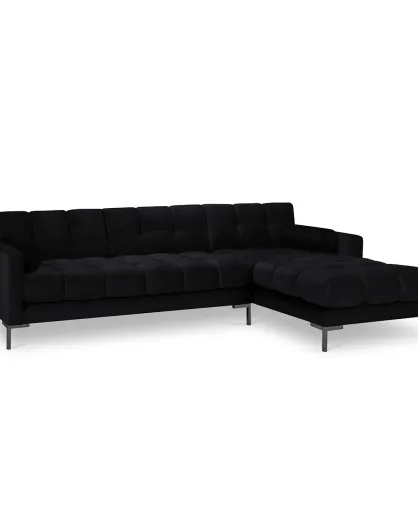 Canapé d'angle Droit Velours Bali noir - 293x185x78cm
