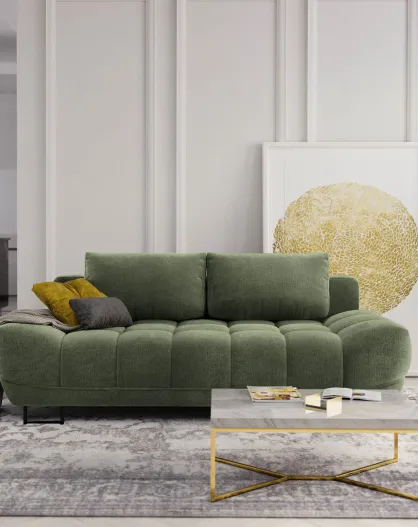 Canapé convertible avec coffre de rangement Cirrus vert - 215x112x90 cm
