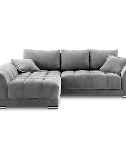 Canapé d'angle Gauche Velours convertible avec coffre de rangement Nuage gris - 285x192x92 cm