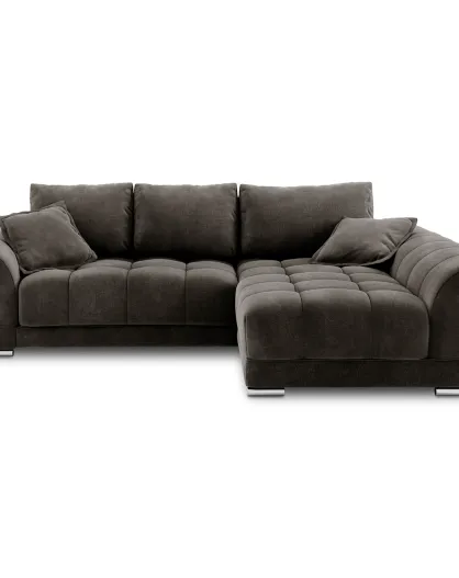 Canapé d'angle droit Velours convertible avec coffre de rangement Nuage marron foncé - 285x192x92 cm