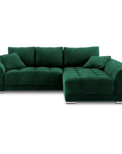 Canapé d'angle droit Velours convertible avec coffre de rangement Nuage vert bouteille - 285x192x92 cm