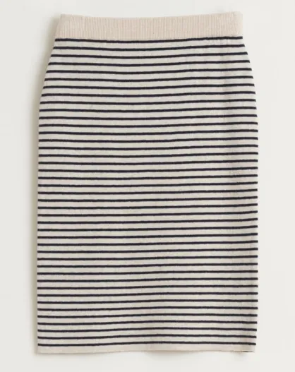 Jupe Girt en Maille de Coton & Laine rayée écru/noir