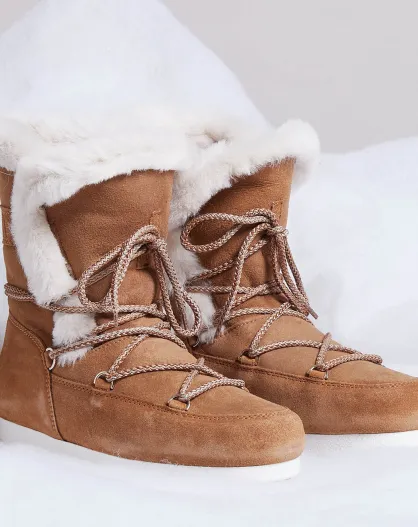 Boots Après-ski en Velours de Cuir & Fourrure Shearl camel