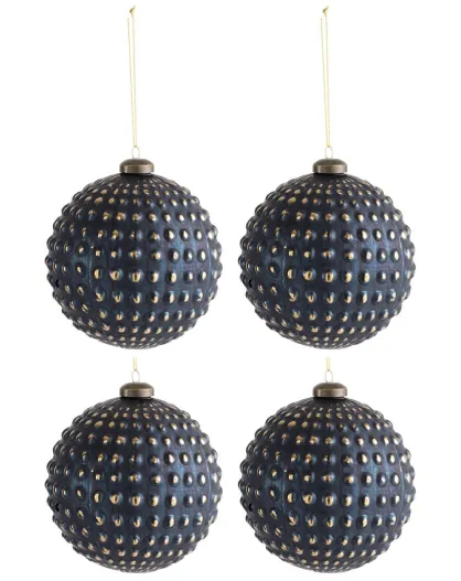4 Boules de Noël Pois bleu/doré - D.12 cm