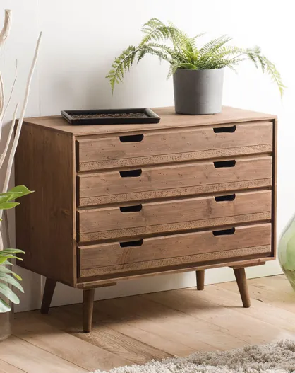 Commode scandinave bois 4 tiroirs sapin andy bois - 80x40x66.5 cm