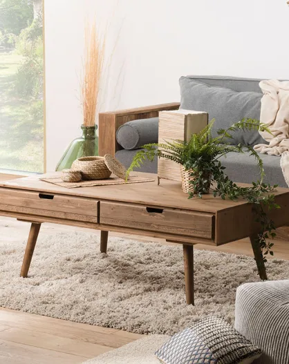 Table basse scandinave bois 4 tiroirs sapin andy bois - 120x70x47 cm