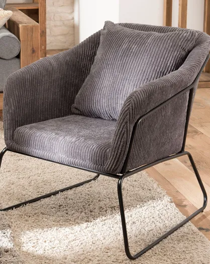 Fauteuil tissu velours cotelé pieds évasés agathe gris anthracite - 76x78x79 cm