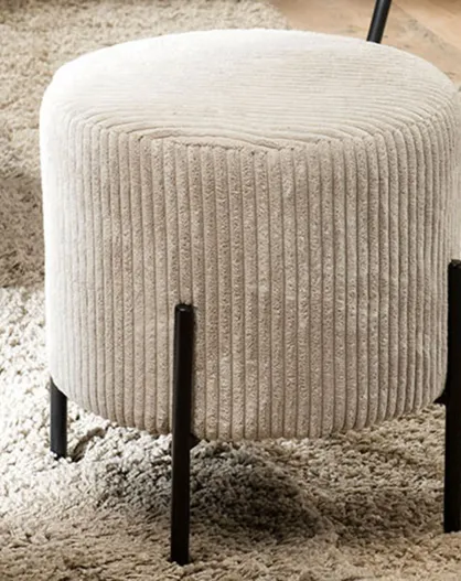 Tabouret rond tissu velours cotelé agathe gris perle - 36x36x42 cm