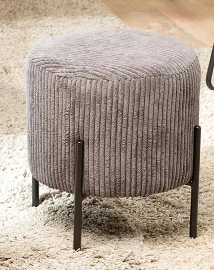Tabouret rond tissu velours cotelé agathe gris anthracite - 36x36x42 cm