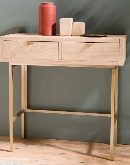 Console 2 tiroirs aline bois/dorée - 80x34x79 cm