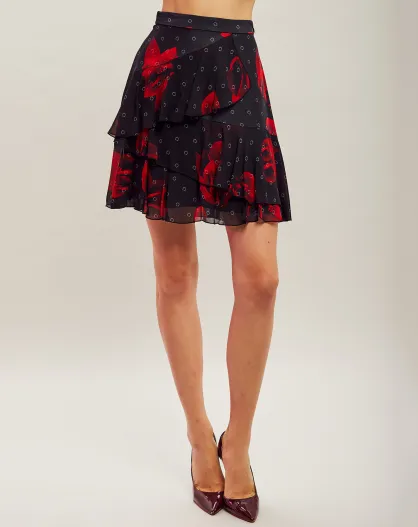 Jupe volantée noir/rouge