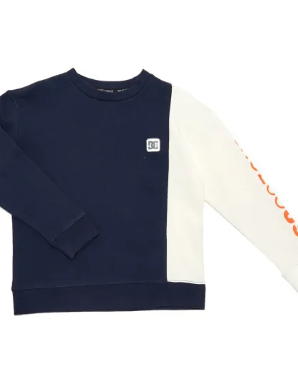 Sweat col rond Bande Manche bleu/blanc