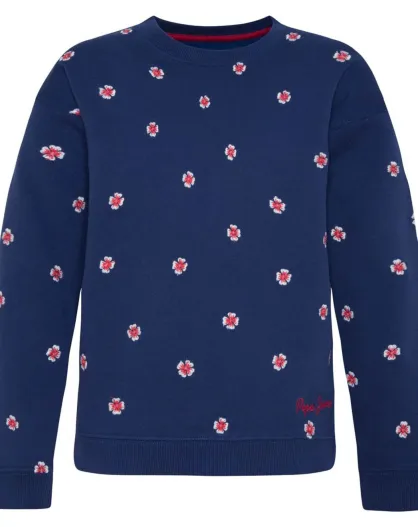 Sweat col rond Fleurs bleu marine