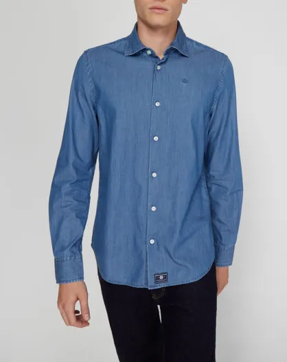 Chemise ajustée chambray bleu denim