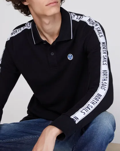 Polo en coton avec bandes noir