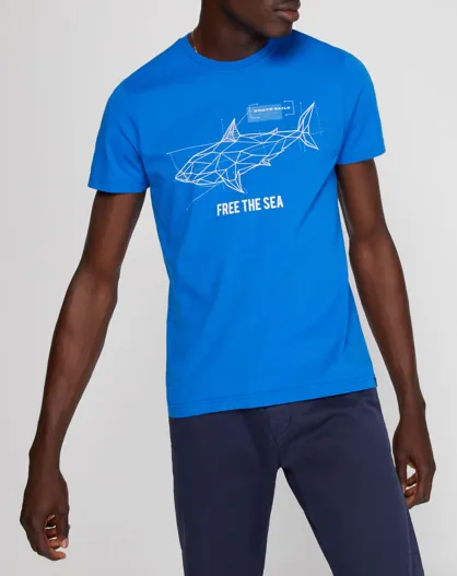 T-Shirt 100% Coton Bio Free The Sea bleu