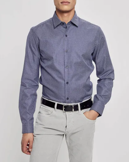 Chemise Slim Fit Briques Carres bleu marine/blanc