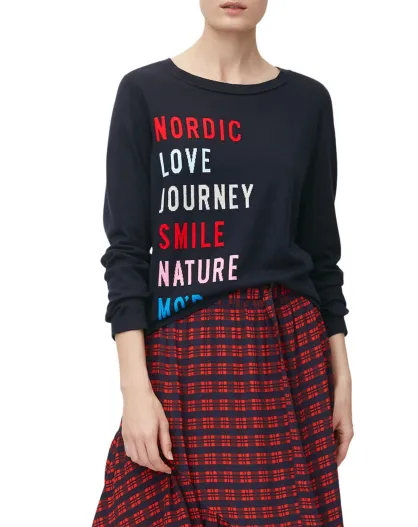 Pull col rond fin écriture bleu marine