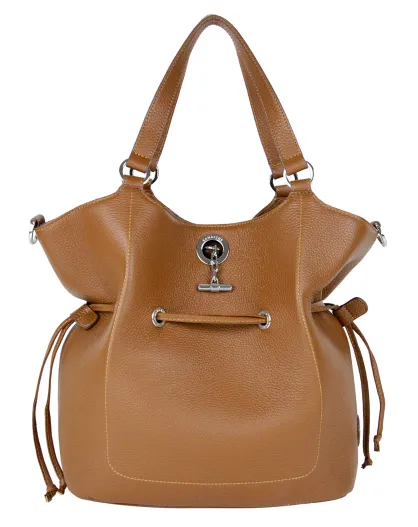 Sac porté épaule en Cuir Paris cognac - 28x31x13.5 cm