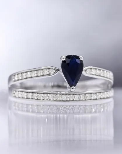 Bague Eugénie Diamants 0.2 ct Saphir 0.63 ct or blanc