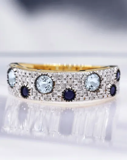 Bague Majunga Diamants 0.0035 ct Saphirs 0.1 ct Topazes Bleues 0.176 ct or jaune