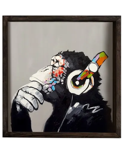 Tableau décoratif encadré Singe multicolore - 33x33 cm