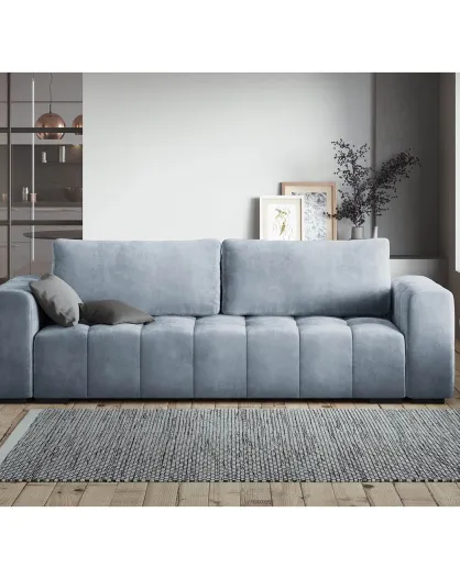 Canapé velours convertible avec coffre 3 places luca bleu clair - 250x105x85 cm