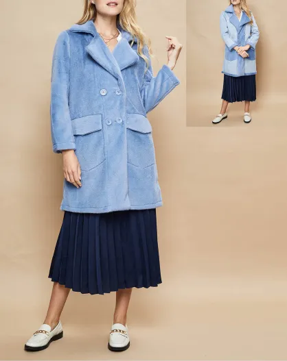 Manteau boutonné en Fausse Fourrure réversible bleu