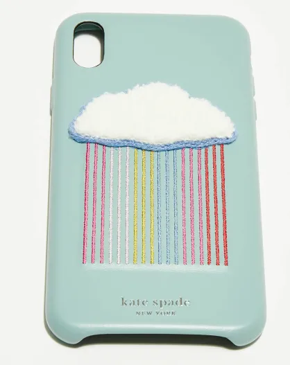 Coque en Cuir iPhone XS Max Arc-en-ciel Cloud Patch bleue